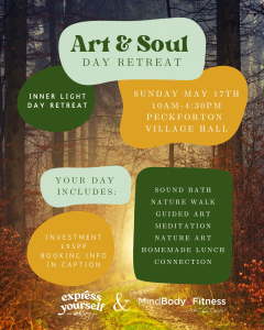 Claire and Sarah who is the most incredible artist are hosting a 1 day retreat in Peckforton & Beeston Village Hall on Sunday 17th May.10.00-4.30pm