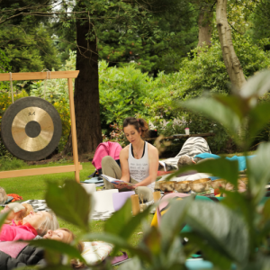 When Gong Bath, breathwork, and grounding practices are held in a garden, the experience is deeply enriched. The garden offers: